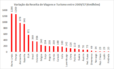 evolução da Receita de Viagens e Turismo entre 1996/2017 e voltamos a destacar